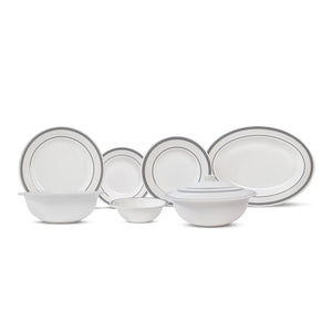 4-Person Set (22 pieces): Includes 4 rice plates, 4 deep plates, 4 quarter plates, 1 donga with 1 cover, 1 rice dish, 1 qorma spoon, 1 rice spoon, 1 open bowl and 4 sweet bowl. Ideal for intimate gatherings and everyday meals.