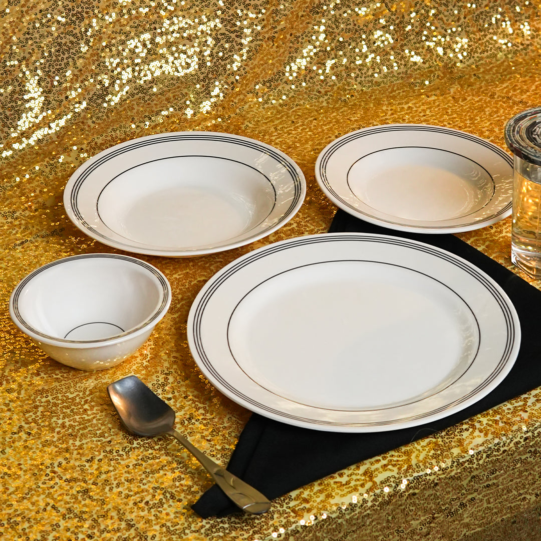 The Chroma stripes black color of each item adds a touch of contemporary elegance to your dining table, making every meal a stylish affair. Whether it's a formal dinner party or a casual meal with loved ones, these sets enhance any dining occasion.