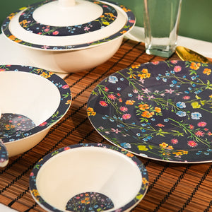 Made from premium-grade melamine with a double-glazed finish, each piece resists scratches, chips, and stains. Strong yet sophisticated, the Dark Bloom Dinner Set is built to accompany everything from casual family dinners to elegant gatherings.
