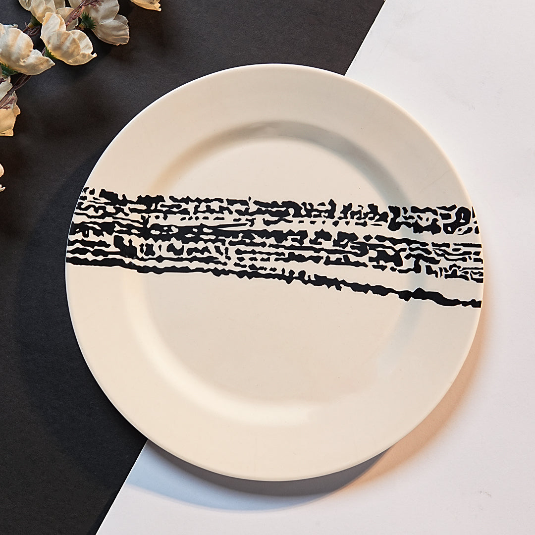 The Eclipse Shade collection is defined by its avant-garde aesthetic. A textured, ink-black vertical stroke cuts across a pristine white surface, creating a visual balance that is both dramatic and sophisticated. Whether you're serving a vibrant biryani or a minimalist main course, this plate acts as a canvas that makes every meal look like a gourmet creation.