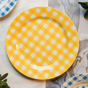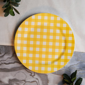Infuse your table with the radiant energy of the Lemon Squares Rice Plate, perfectly sized at 11 inches in diameter. This cheerful piece from our collection captures the timeless appeal of a sunlit picnic, featuring a bright yellow and crisp white gingham check pattern entirely across its surface. It brings a warm, inviting, and captivating elegance to every meal.