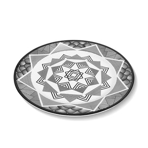 Intricate Geometry: The "Midnight Solstice" design features a captivating sequence of overlapping celestial triangles and radial patterns, creating a mesmerizing focal point for any table setting.