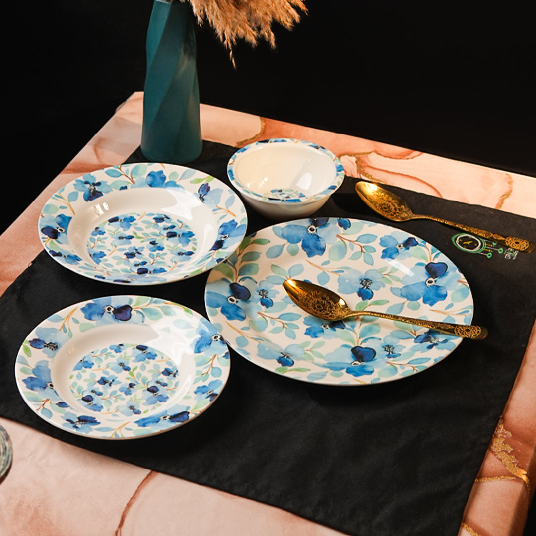 Immerse your dining moments in the refreshing hues of the Sea of Blue Dinner Set. Inspired by the tranquility of ocean waves and the charm of blooming florals, this collection brings a light, airy elegance to your table — perfect for both everyday meals and memorable gatherings.
