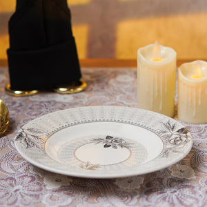 The striking interplay of dark tones and soft blooms in Shadow Bloom adds refined elegance to any meal. Ideal for biryani, rice dishes, or full-course servings, these plates balance artistic flair with everyday usability.